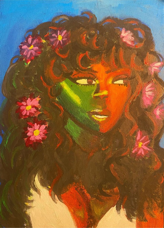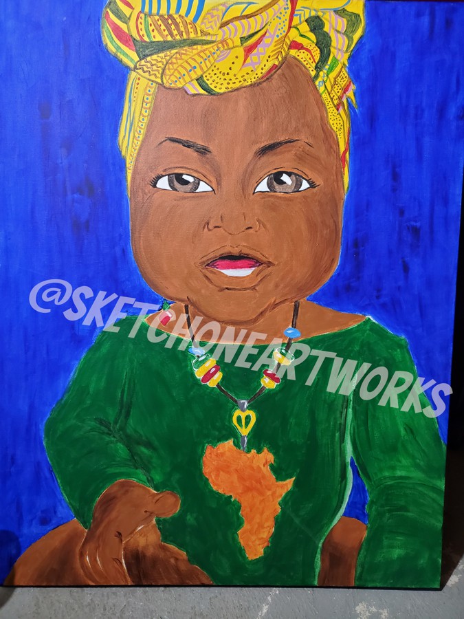 Efemena Ogboru was born and raised in Abuja, Nigeria. In 2017 she moved to Canada to pursue a degree in Fine arts at the University of Manitoba. She is an interdisciplinary artist who works with acrylics, oil paint, collages and digital works. She specialises in portraits and focuses on skin texture and the different tones in the skin. She has always had a passion for drawing from a young age, having grown up around different types of artists. She learnt how to work with oil paint from a professional Nigerian oil painter in 2016 and in 2018 she started learning graphic design. She has participated in an exhibition to help raise funds for orphans in Uganda, she has also participated in the Art Olympia 2019 competition and she has been selling her paintings and prints for over 7 years. She enjoys experimenting with different media and will continue to explore different drawing and painting techniques in the future.
